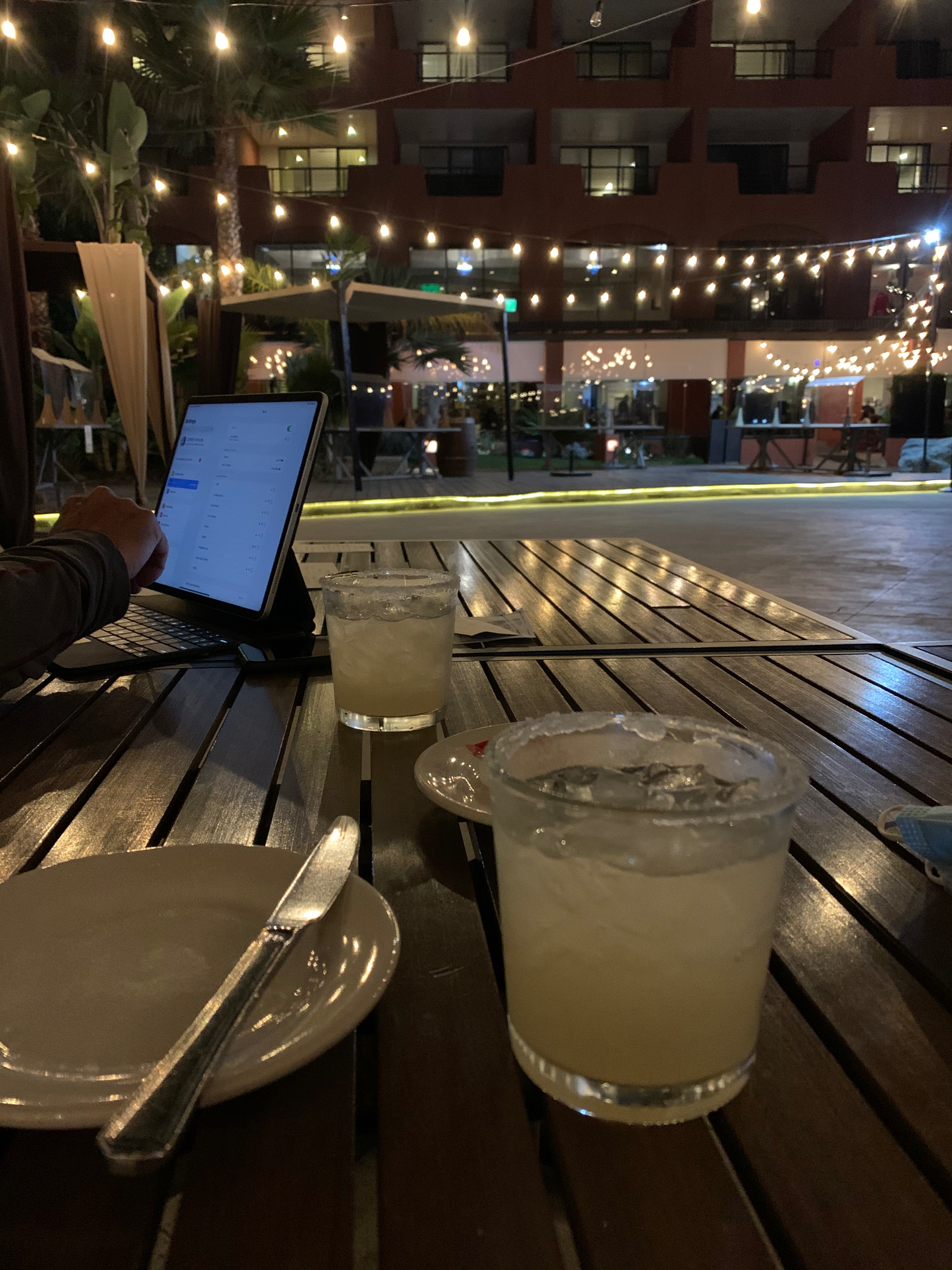 BIENVENIDOS A MEXICO! Arrived at Marina Coral in Ensenada, checked into Mexico at the local customs and immigration office then enjoyed a Thanksgiving dinner of local specialties and “skinny” margaritas: 38 USD.