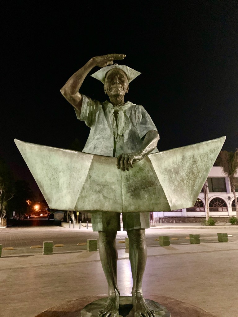 An evening walk to dinner along the “malecort” that perimeters the bay at La Paz. Nearly everyone here wears a mask as protection against the virus and one’s temperature is taken upon entry of any store, restaurant or marina.