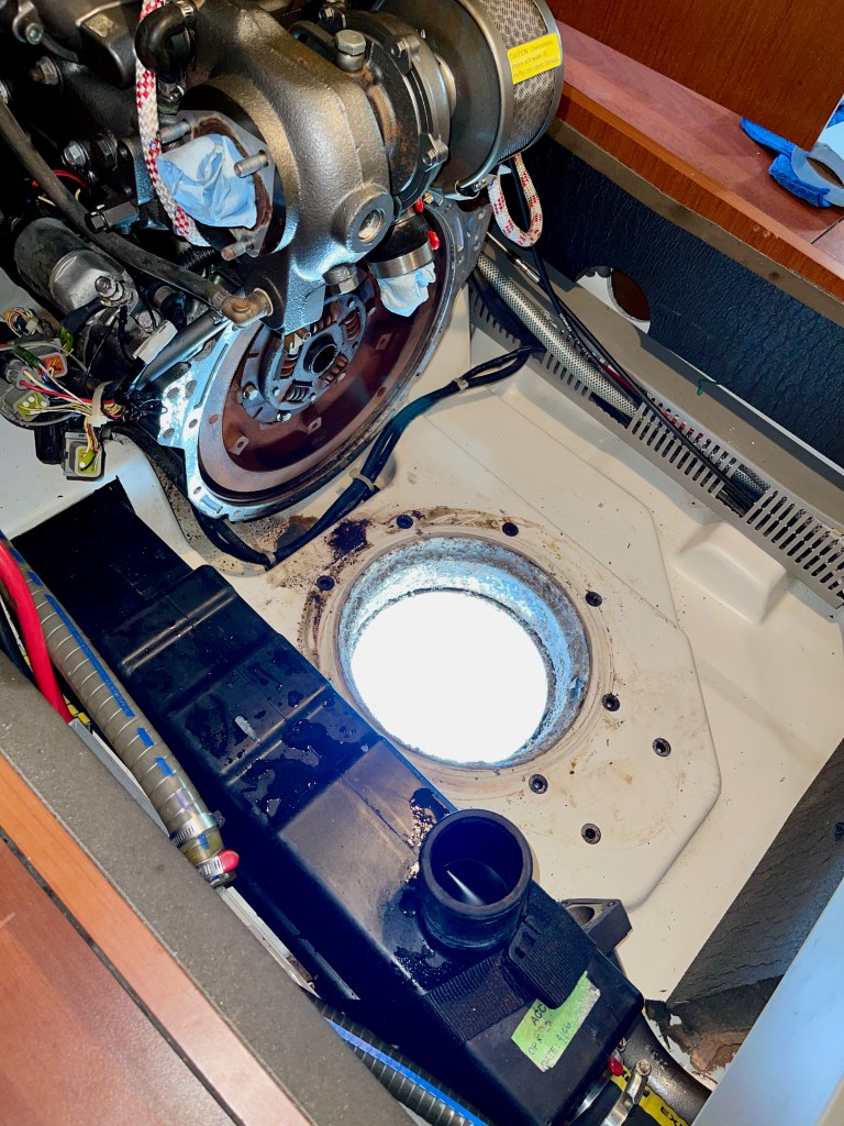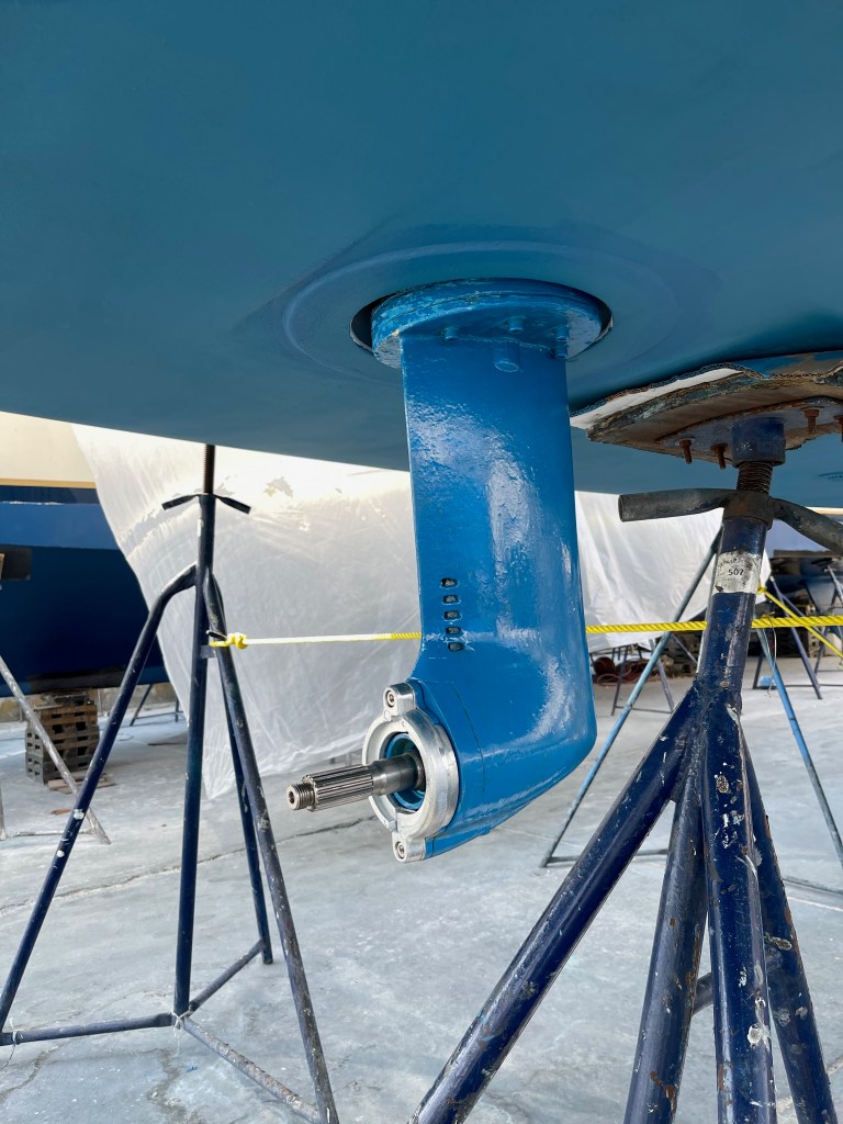 The rebuilt sail drive was re-installed with newly PropSpeed painted prop!