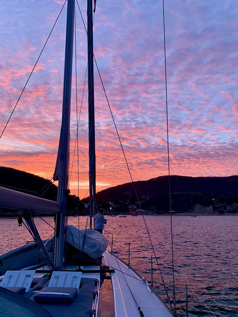 Late to bed but early to rise, we left Caleta de Campo with Zihatanejo as our destination.