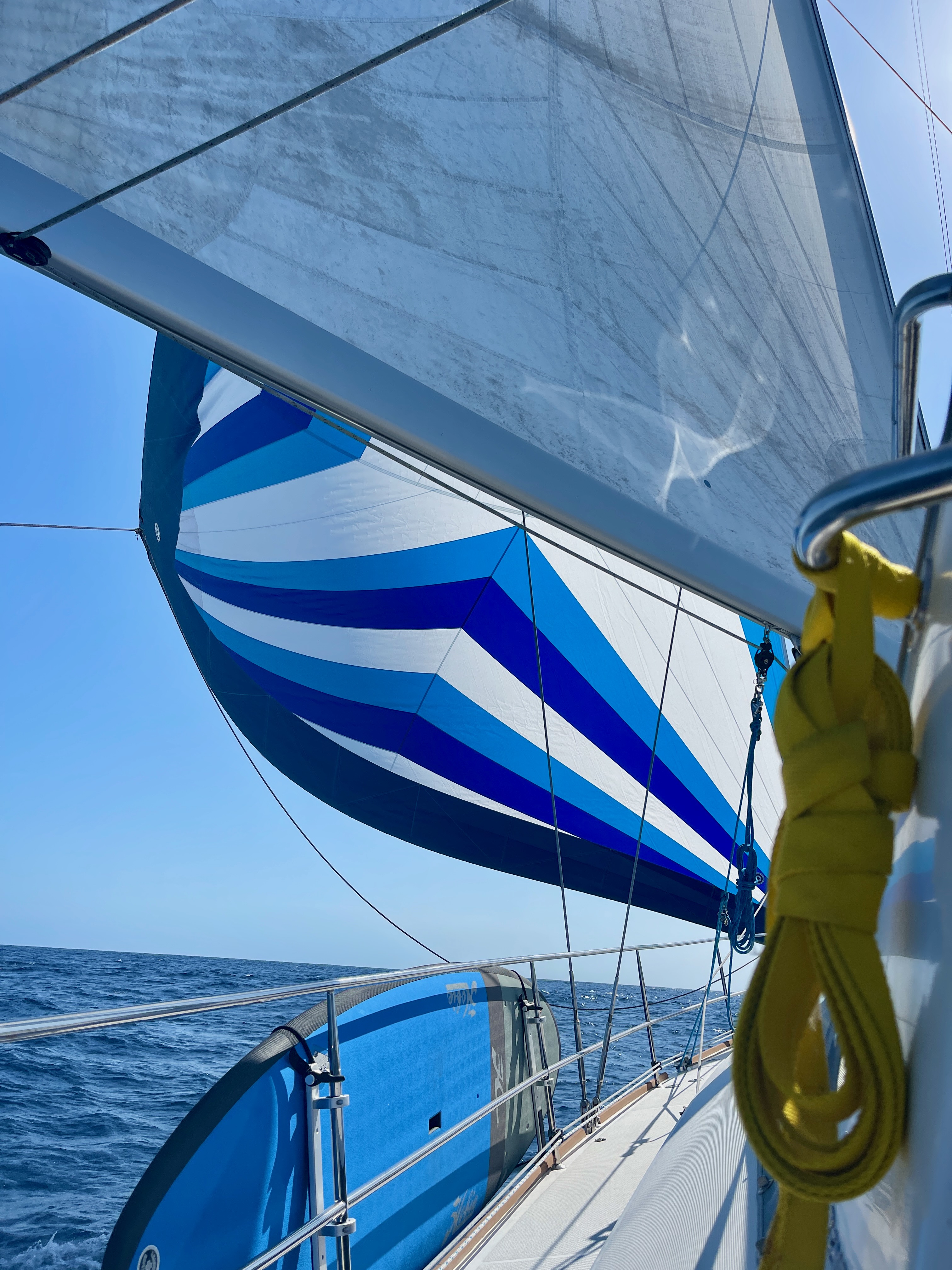 In the lighter airs we hoisted the code 0 out of the forepeak and raised it on the spinnaker halyard.